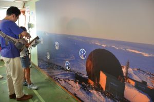 タブレットを用いてAR(拡張現実)の技術を体験しながら南極クイズに挑戦。