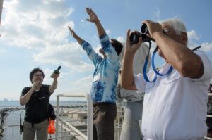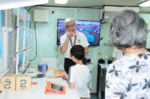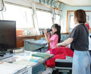 艦長椅子に座って双眼鏡を覗くことができました。