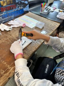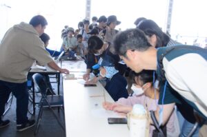 自分で描いた絵や文字でキーホルダーが作れます。材料が完売となるほどの人気ぶりでした。