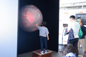 「SPHERE」に触れたり、SDGsパズルゲームで地球環境について学ぶことができました。