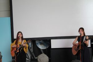 天候が危ぶまれましたが、ヘリ格納庫でライブを行い無事終えることができました。
