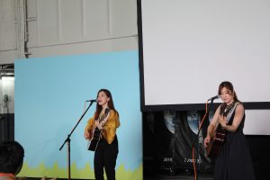 天候が危ぶまれましたが、ヘリ格納庫でライブを行い無事終えることができました。