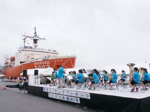 当日は自衛隊千葉地方協力本部によるマリンフェスタinFUNABASHI・経済ミーティングプレゼンツつながる船橋80年と題して様々な催しが開催され、SHIRASEでも定番の五象体験コーナーをはじめ、ソラヨミ教室、南極クラス、スマホでのぞく南極の世界、南極観測60周年講演、南極グッズ販売、東京湾臨港道路南北線の海底トンネル工事現場見学、5002と5003を見比べるスペシャルツアー、会場内のスタンプラリー(スタンプラリーは5002の乗船が必要)、折り紙飛行機教室などが開催されました。現役しらせ5003の見学や装甲車両の展示を始め、メインステージでは音楽演奏や踊り、屋台の出店などが有りました。