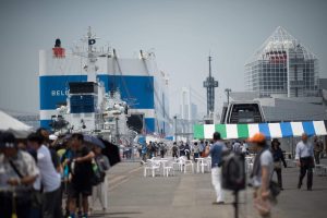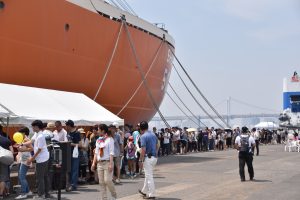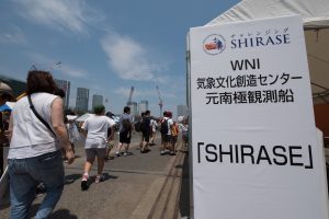 7月16日に東京・晴海埠頭へ移動し行われたチャレンジングSHIRASE2018第三回は、海と日本プロジェクトの「海と日本プロジェクト in 晴海」へ参加する形での企画で開催されました。今回はSHIRASEの他にも海上保安庁 巡視船「ぶこう」や次世代自動車運搬船「BELUGA ACE(ベルーガ エース)」、JAMSTEC 支援母船「よこすか」なども晴海埠頭に停泊し、まさにオールジャパンの船の祭典となりました。SHIRASEも無料公開を行い、真夏の厳しい日差しが照りつける中、今回も3000人を超える沢山のご来場をいただくことができました。ありがとうございました。